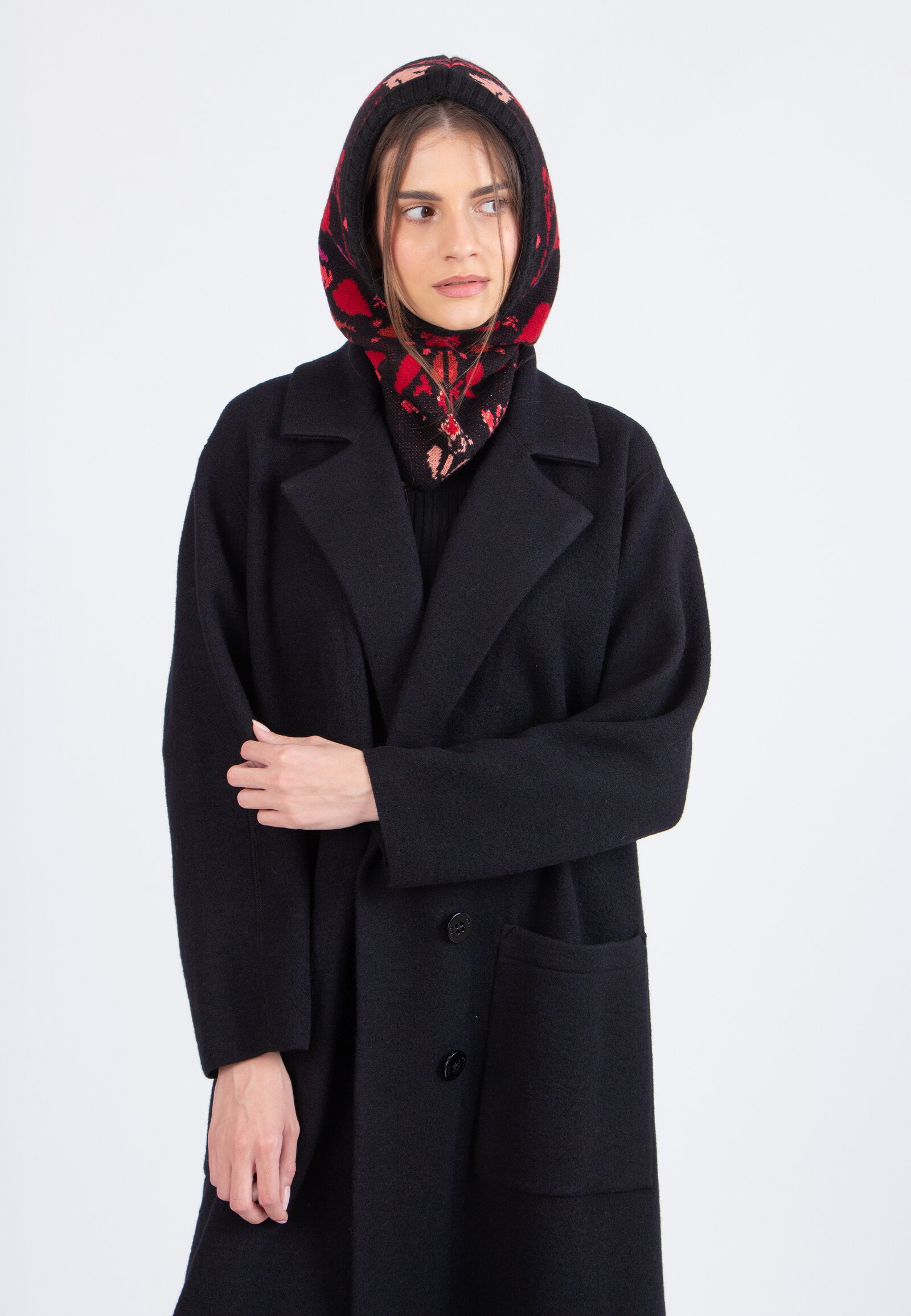 Wool 40%, Viscose 30%, Nylon 20%, Cashmere 10% Hand wash, cold. Do not bleach. Flat drying in the shade. Iron at low temperature. Professional mild dry-cleaning in: perchloroethylene, hydrocarbons