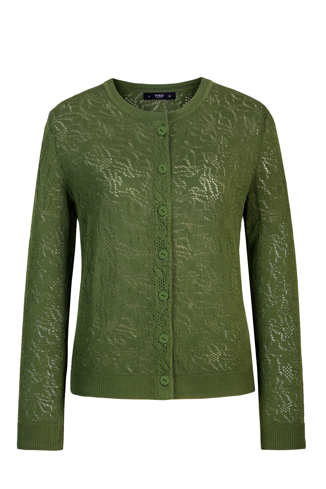 A round-neck cardigan knitted from pure viscose by IVKO Woman in a delicate pointelle structure pattern. Subtle openwork elevates the simplicity of a single colour. Viscose's silky drape makes it luxuriously comfortable.