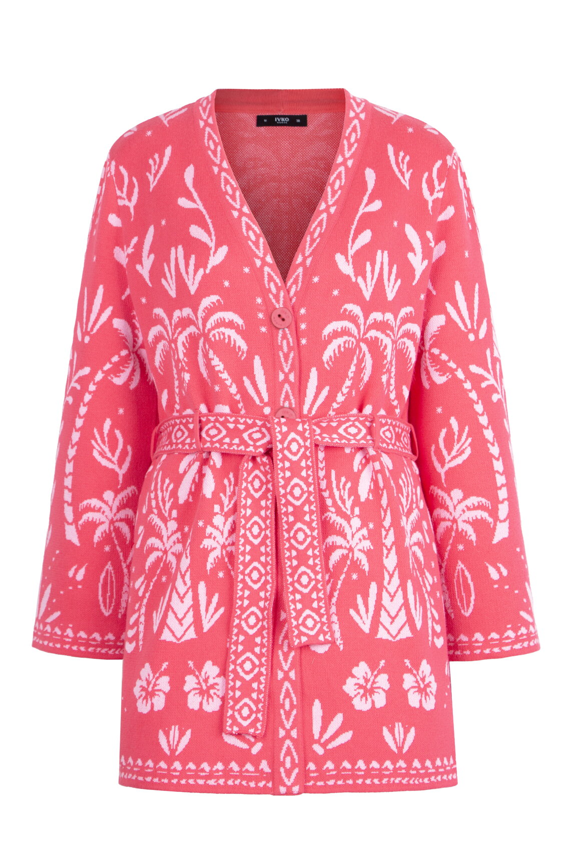 A long cardigan knitted from cotton with elastane by IVKO Woman, adorned with a stylised tropical motif. The elongated silhouette bridges urban style and natural freedom. Cotton with elastane offers comfortable stretch.