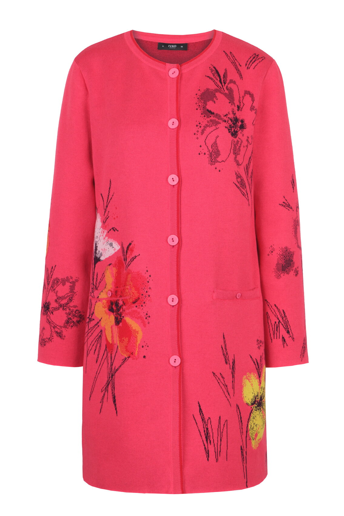 A statement-length coatigan knitted from pure cotton by IVKO Woman, with painterly floral blooms across the body. The open-front silhouette layers effortlessly over dresses and tops, with cotton breathability for all-day comfort.