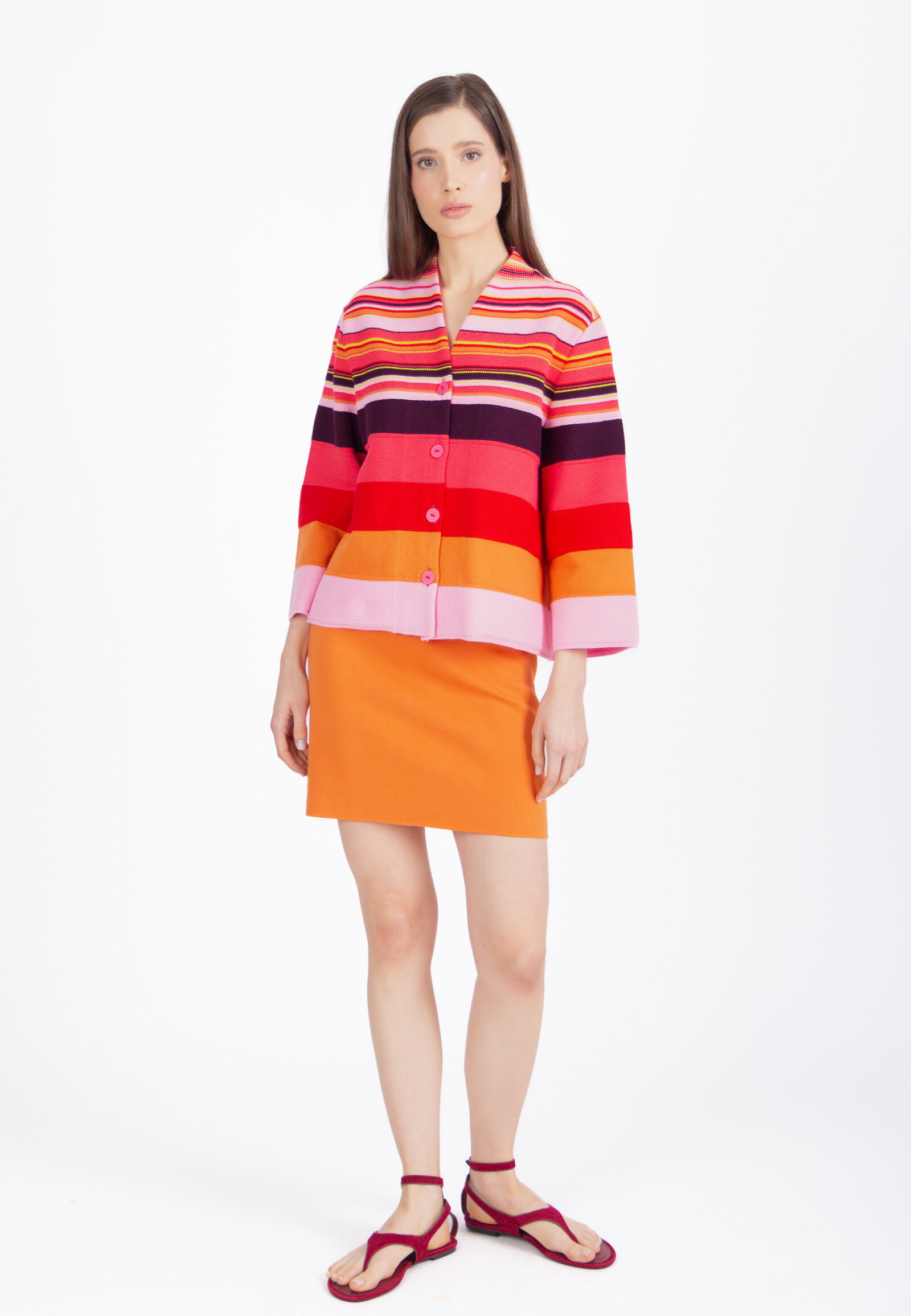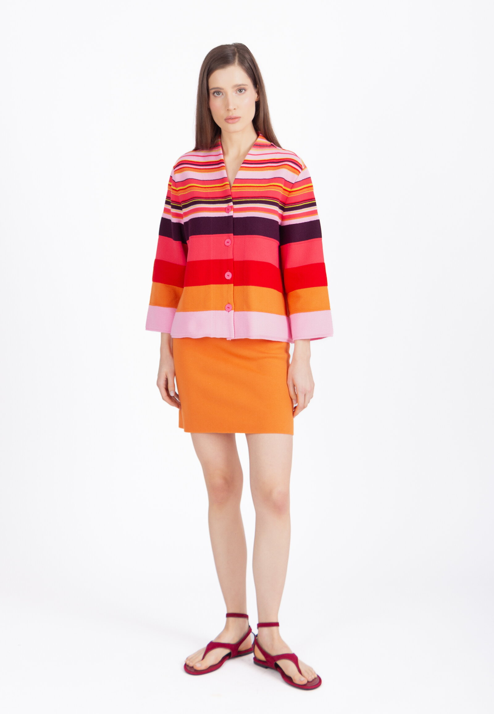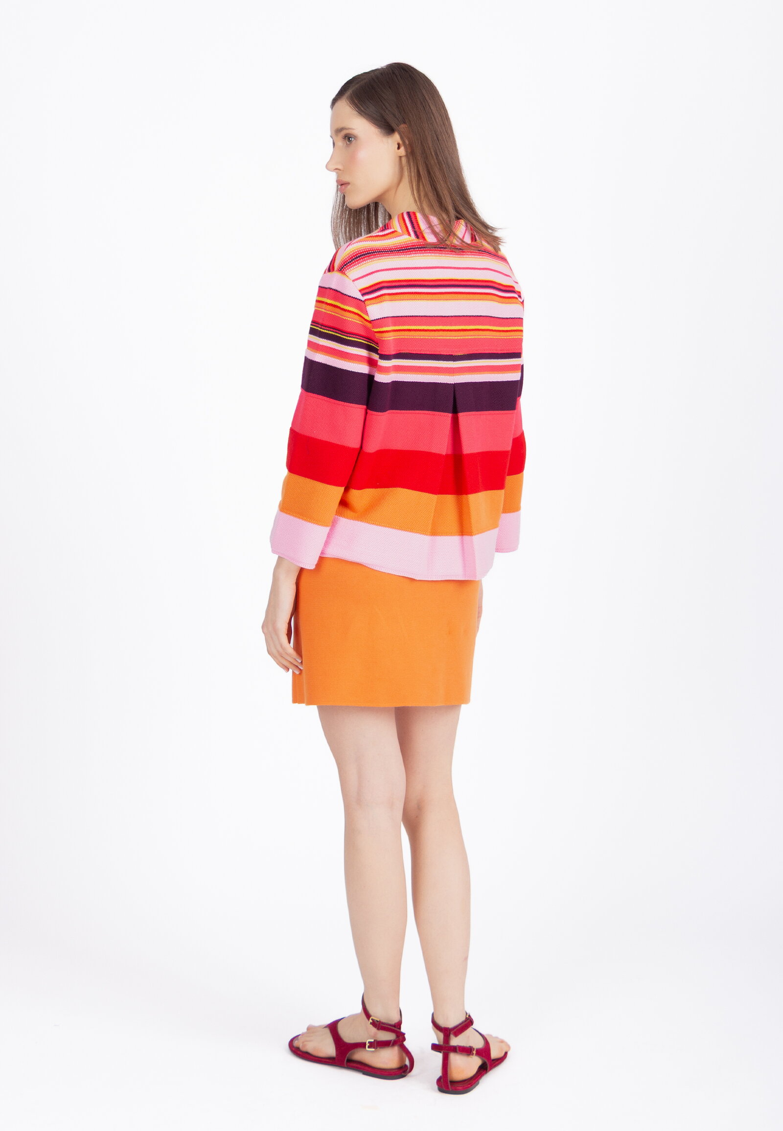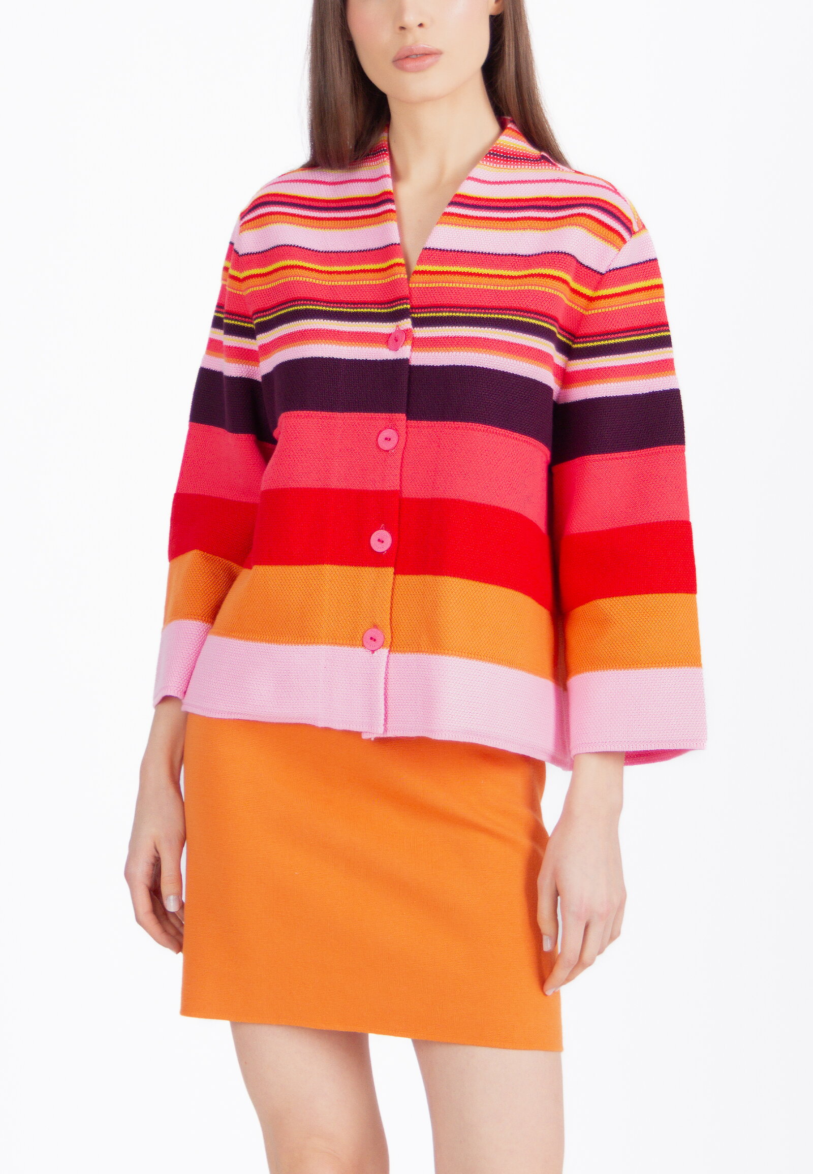 A striking cardigan knitted from pure cotton by IVKO Woman, with bold colour-block stripes and an elegant back pleat. Unexpected colour combinations give classic stripes a fresh, contemporary edge. Naturally breathable.