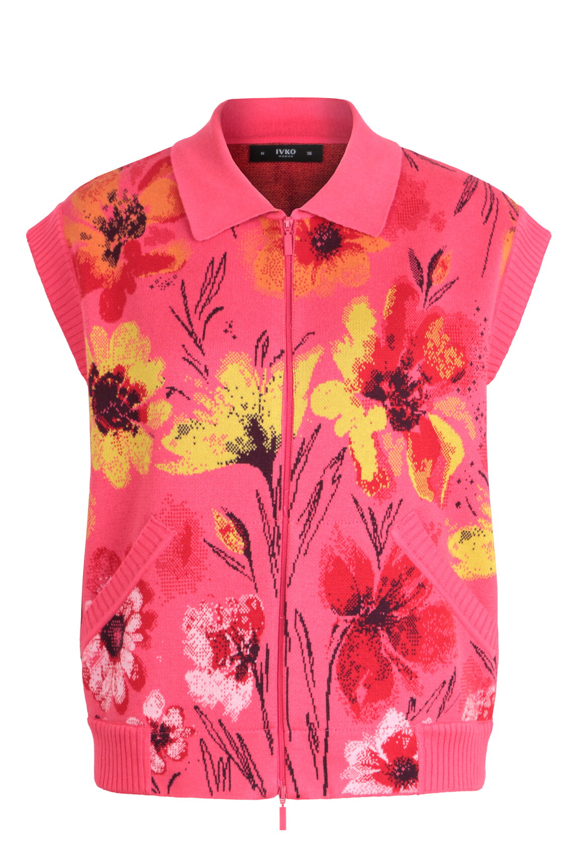 A sleeveless vest knitted from pure cotton by IVKO Woman, featuring an expressive jacquard floral pattern. A versatile layering piece that brings colour and artistry to any outfit. Lightweight cotton for warm-day comfort.