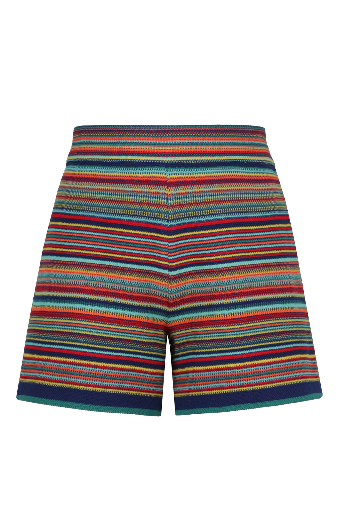 Relaxed shorts knitted from pure cotton with linen details by IVKO Woman, in a multicoloured jacquard stripe pattern. Rich texture and dynamic striping bring casual sophistication. Linen accents add natural breathability.