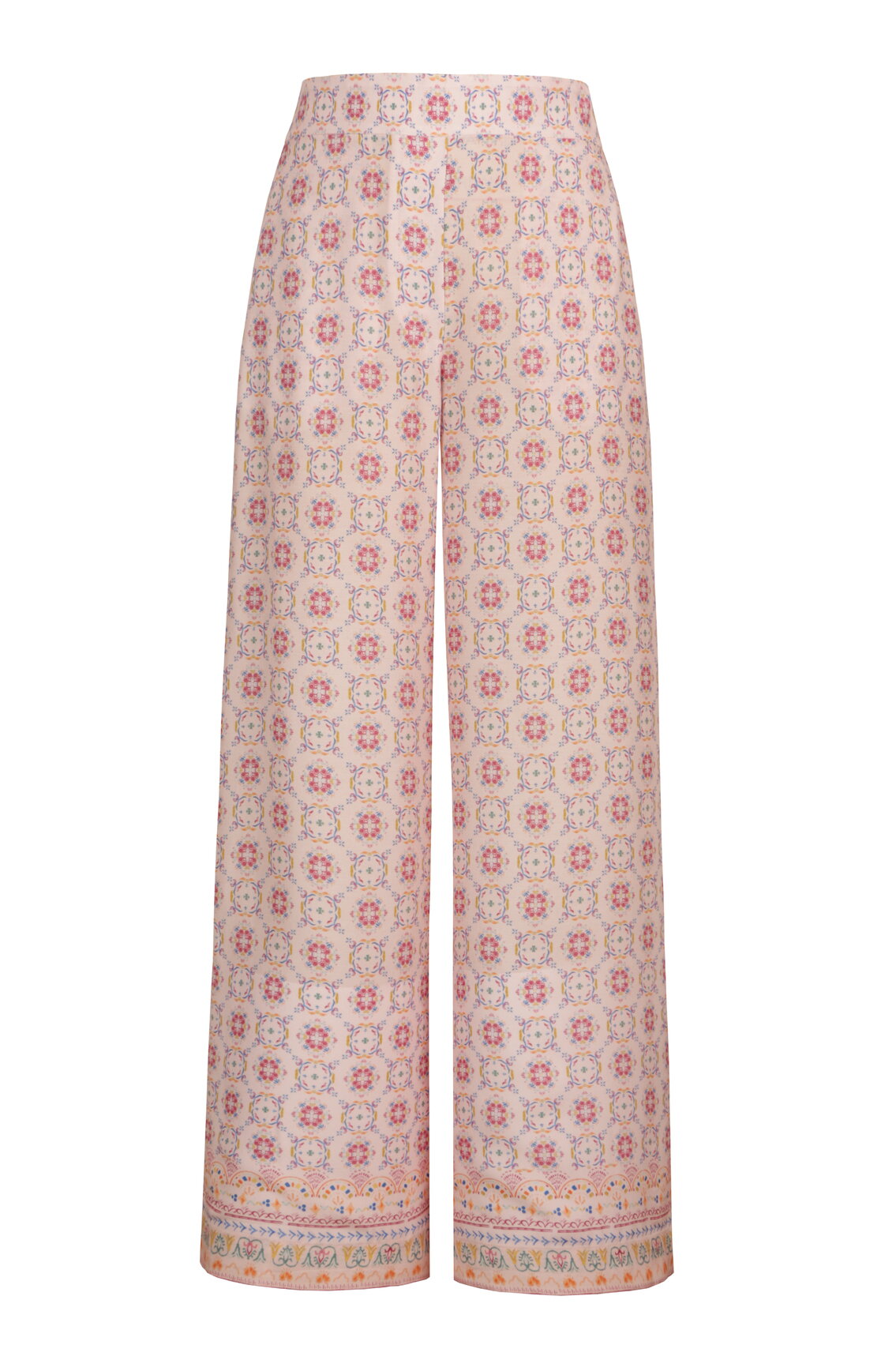 Wide-leg pants knitted from pure viscose by IVKO Woman, with an all-over Mediterranean pattern. Flowing drape and coastal motifs create a polished, holiday-ready piece. Viscose gives effortless, elegant movement.