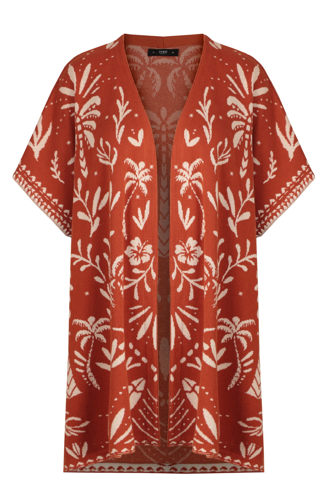 A one-size poncho knitted from pure cotton by IVKO Woman, with a lush urban botanic pattern. The flowing, open silhouette makes it an effortless summer essential for every body type. Pure cotton for breathable comfort.