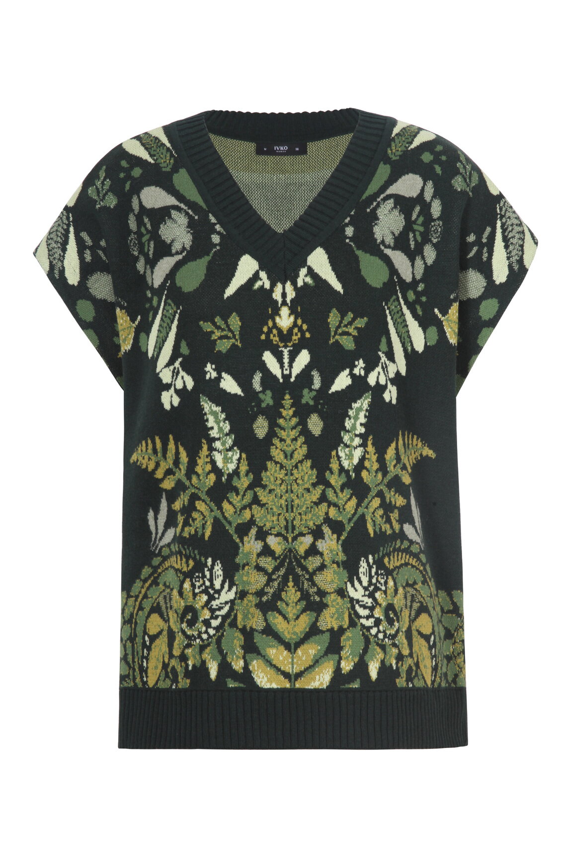 Sleeveless cotton pullover with a V-neck and Plantopia pattern. Light and breathable, designed for layering and expressive styling.