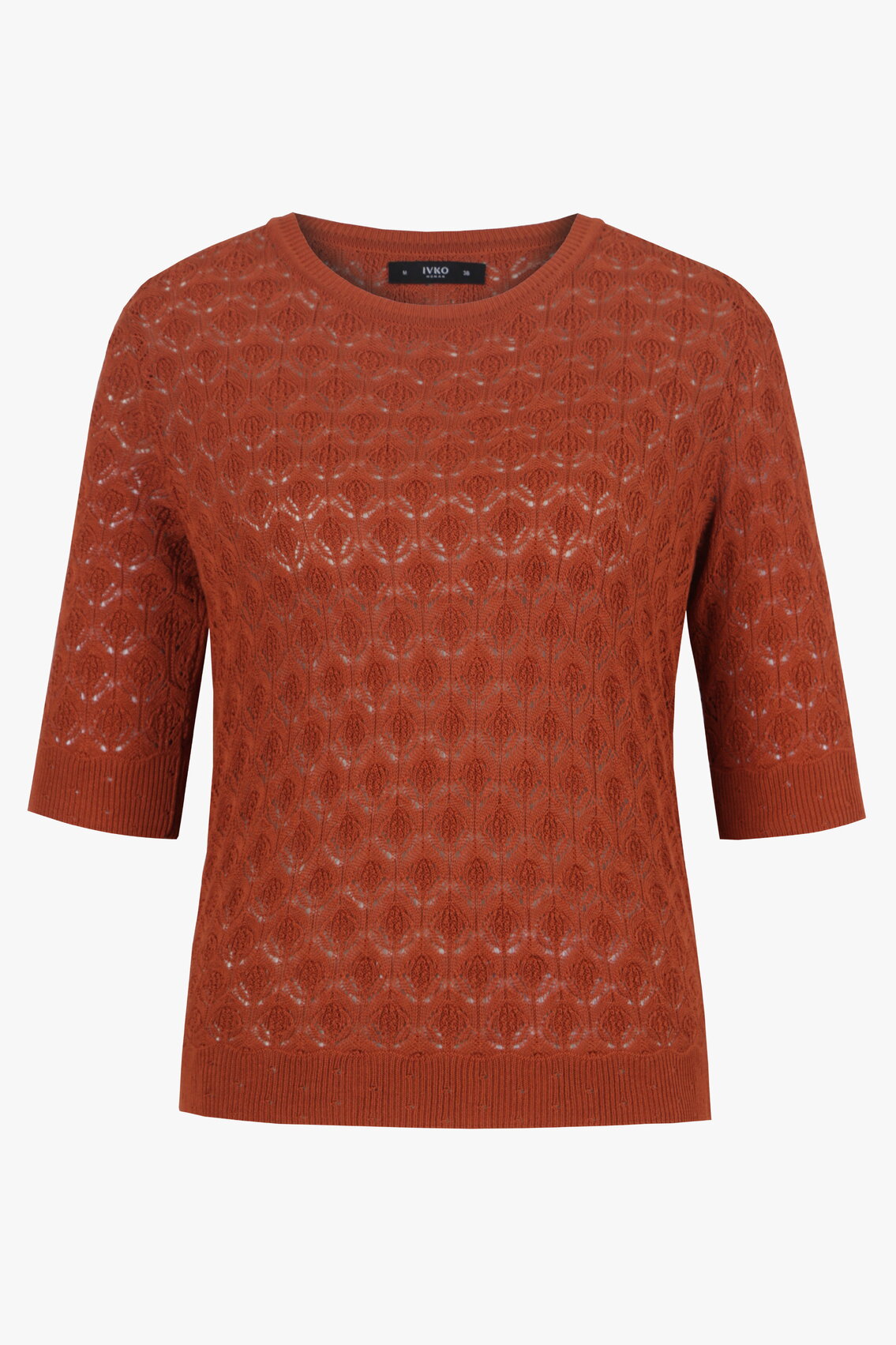 A three-quarter-sleeve pullover knitted from pure viscose by IVKO Woman in a raised structure pattern. Tonal texture and relaxed fit bridge simplicity and sophistication. Viscose delivers beautifully soft drape and movement.
