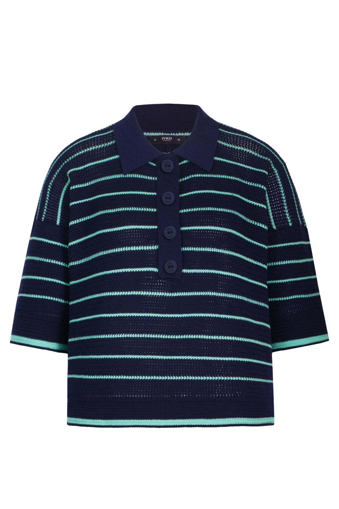 A short-sleeve pullover knitted from pure cotton by IVKO Woman in a refined two-tone stripe pattern. Subtle contrast creates quiet sophistication in a versatile summer essential. Pure cotton ensures soft, breathable comfort.
