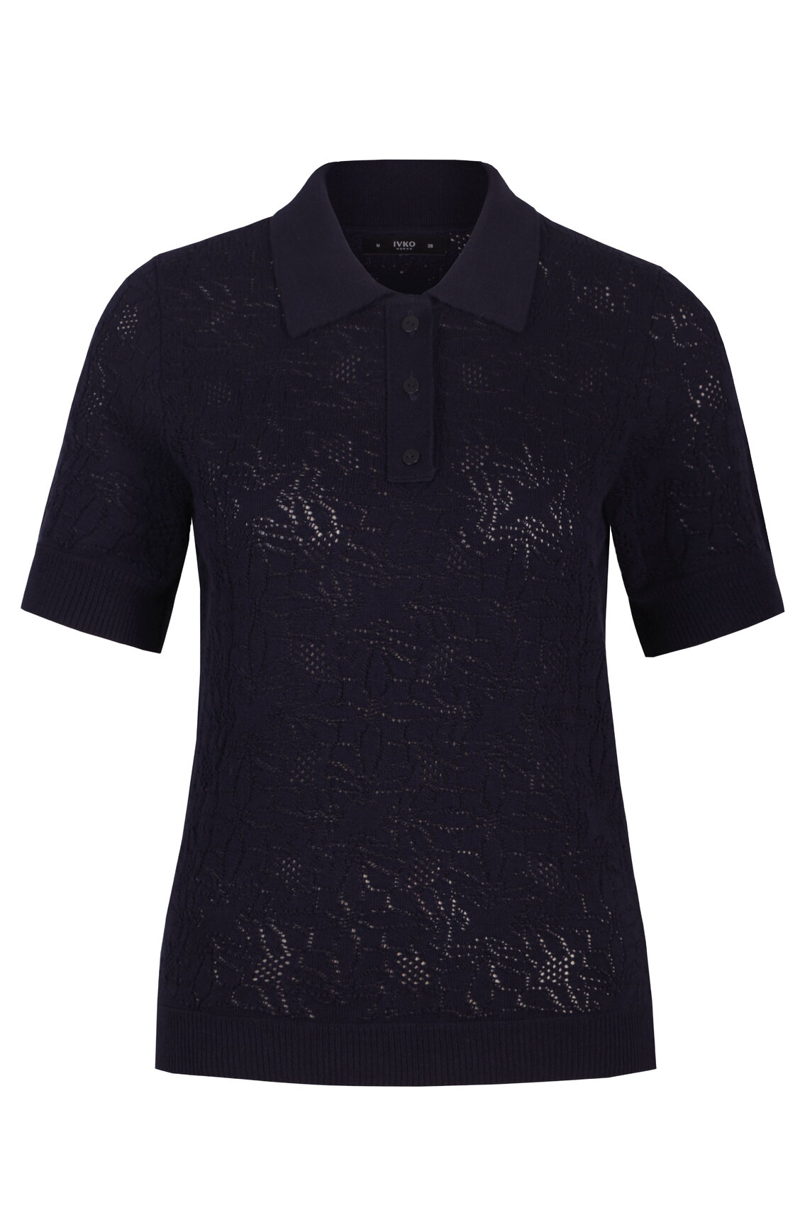 A short-sleeve pullover knitted from pure viscose by IVKO Woman with a polo collar and subtle structure pattern. Soft drape and refined texture create understated sophistication. Viscose's silky touch brings effortless elegance.