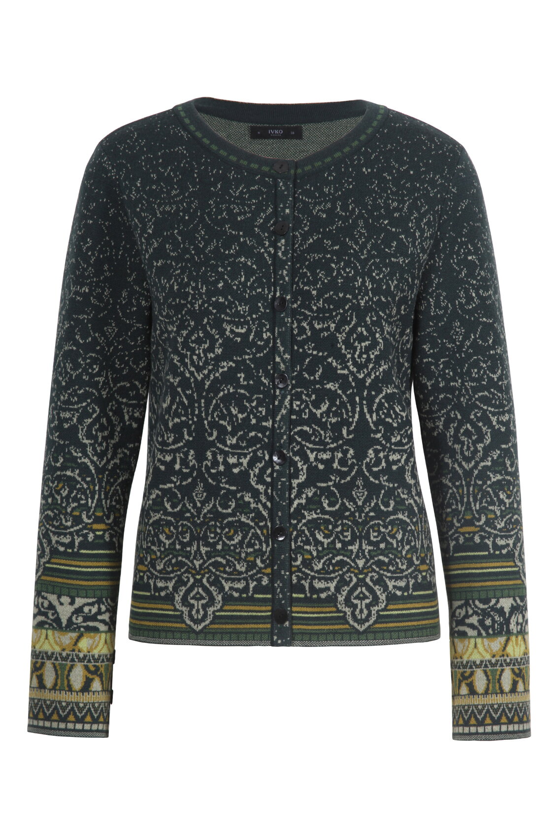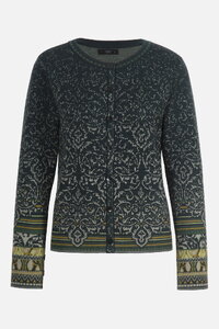 Strickjacke mit O-Ausschnitt, Ornament Muster