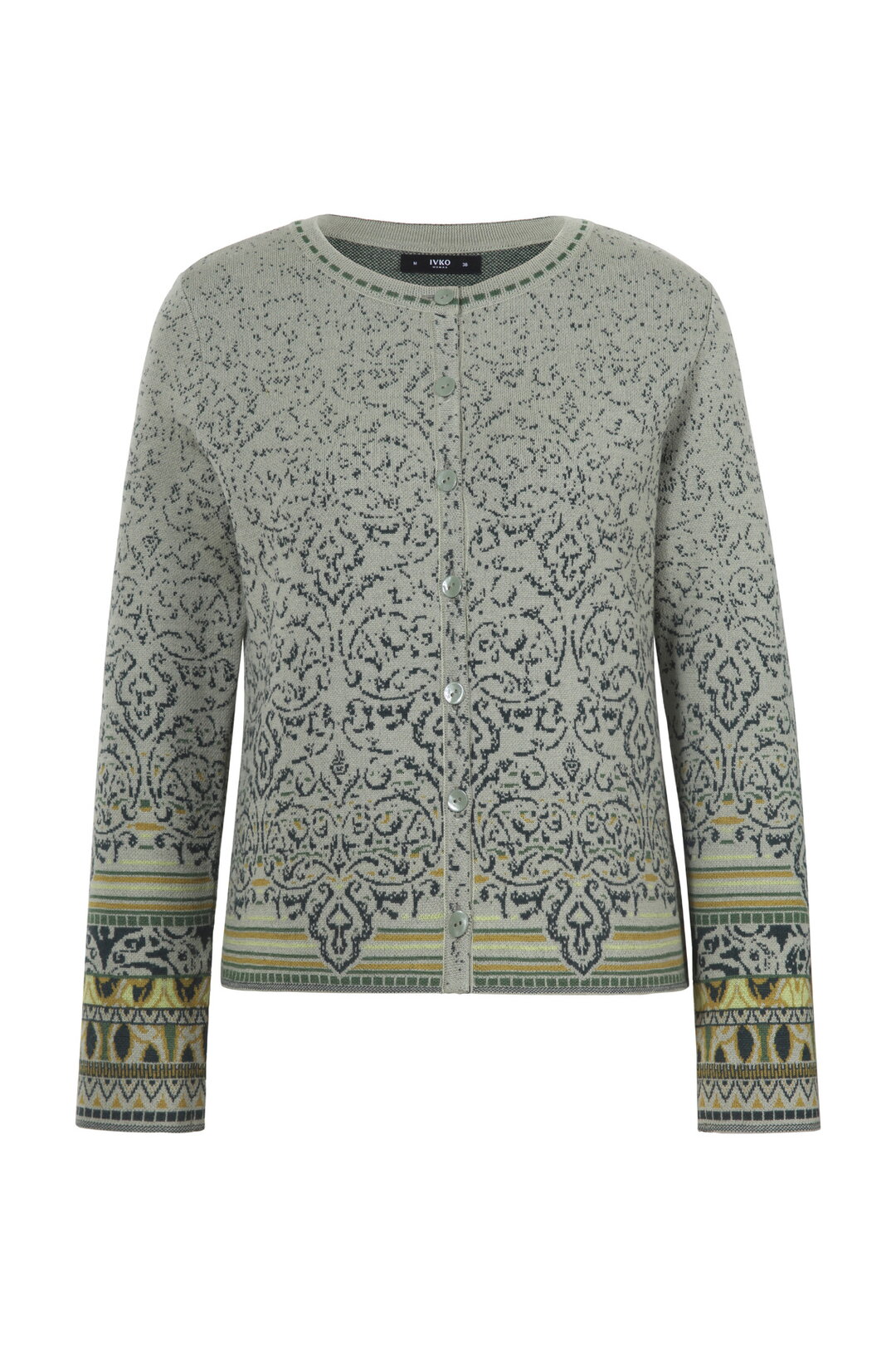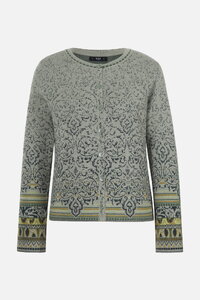 Strickjacke mit O-Ausschnitt, Ornament Muster
