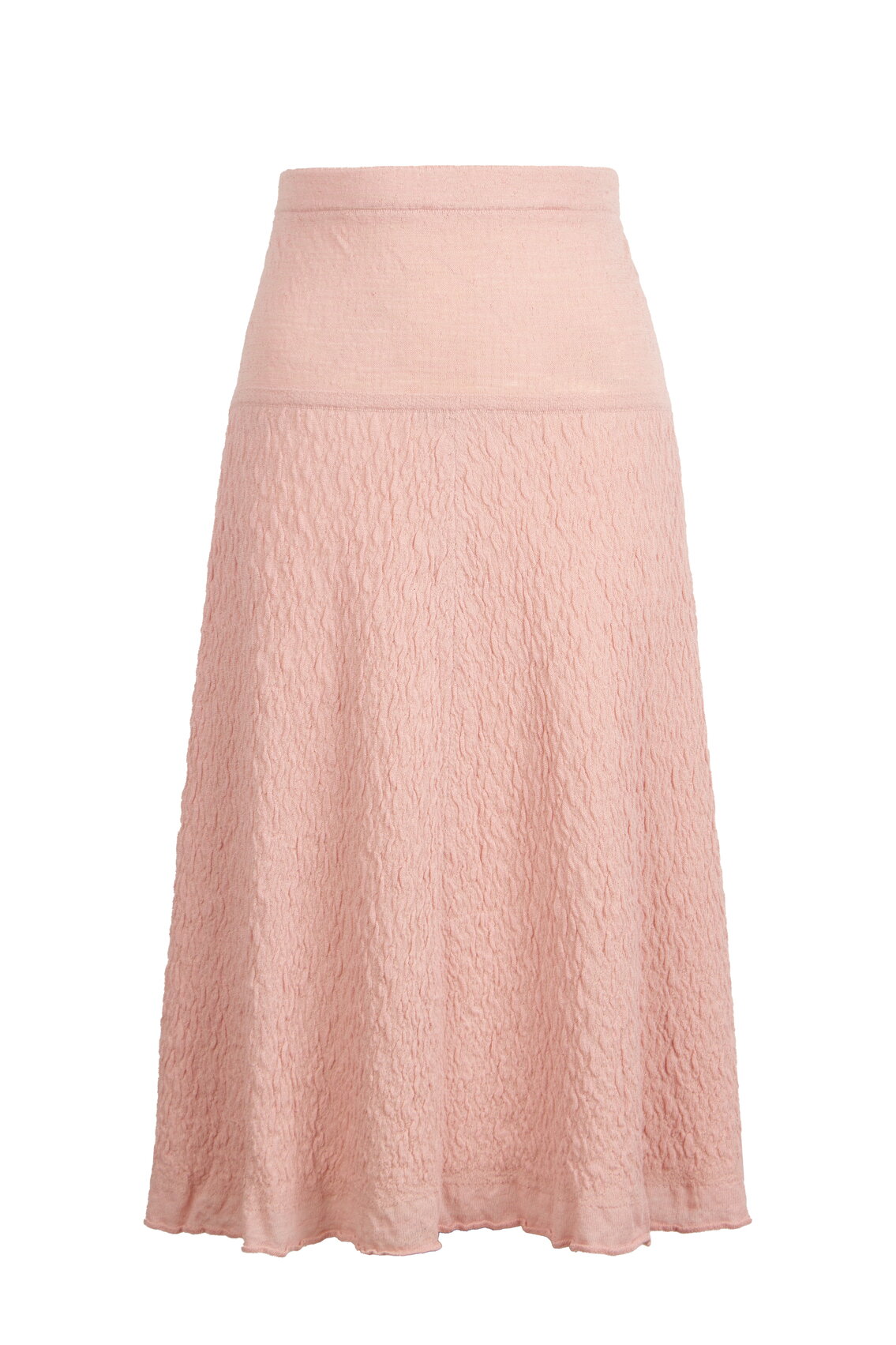 Ein ausgestellter Rock aus einem Leinen-Viskose-Mix von IVKO Woman in einem Struktur Motiv mit gewelltem Saum. Natürliche Fasern und raffinierte Stricktechnik formen eine elegante Silhouette. Leinen sorgt für kühlen Komfort.