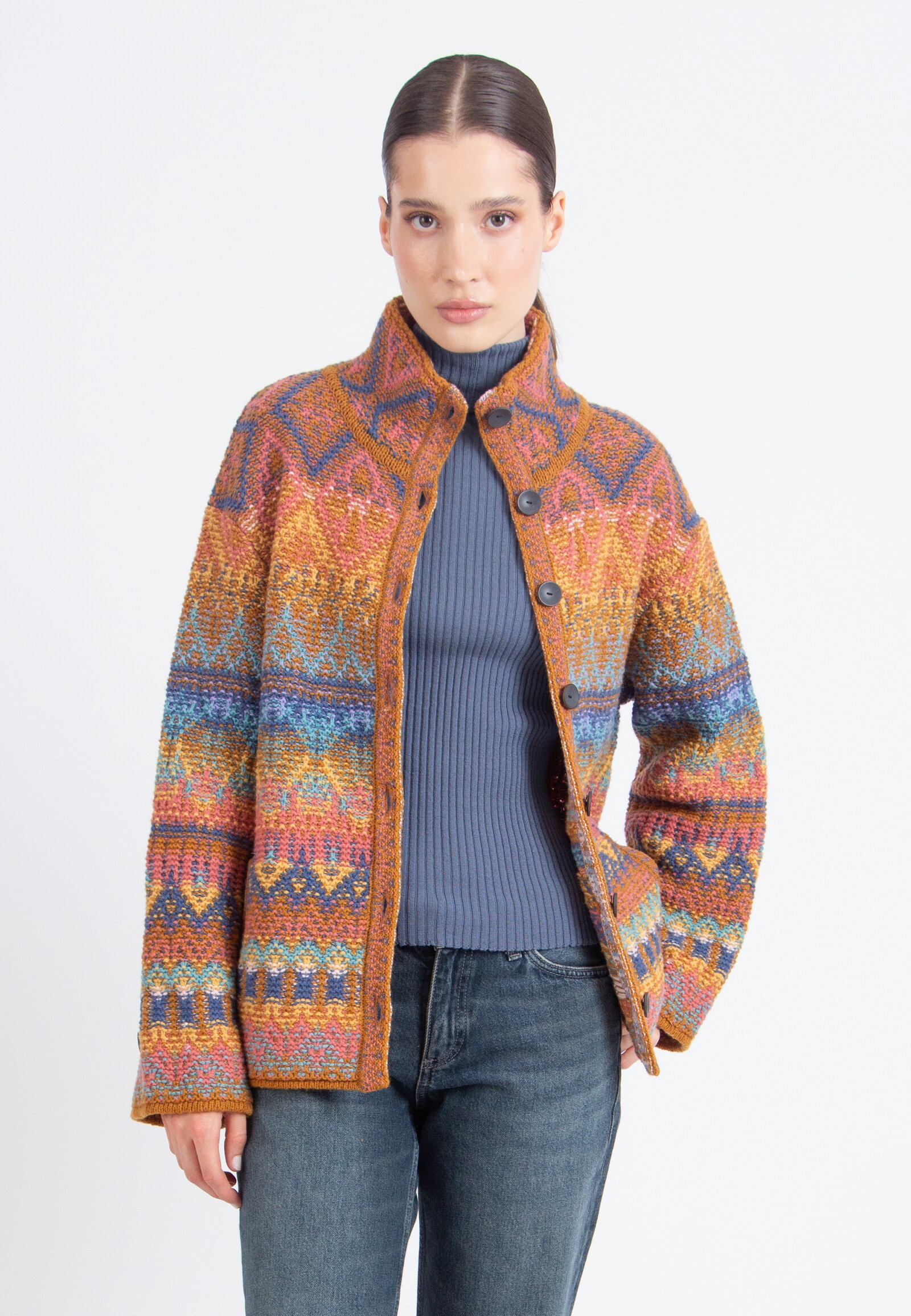 Jacquard-Jacke aus Wollmischung mit Rollkragen und Re-Dandy-Motiv. Ausdrucksstarkes Design und warme Struktur – perfekt für die kalte Jahreszeit.