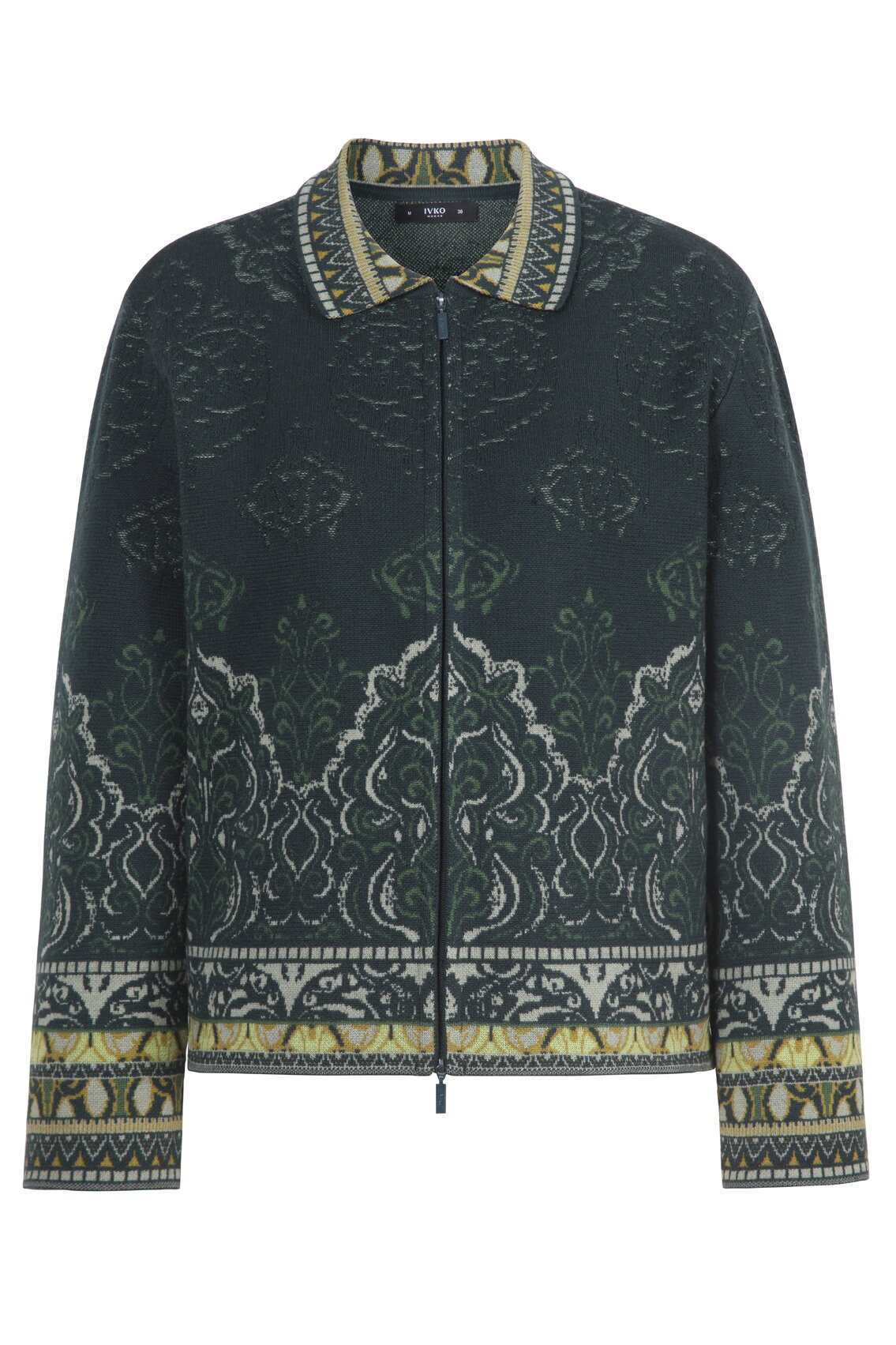 Vunena jakna sa Ornament motivom u preciznom žakard pletivu. Diskretno zatvaranje i uredni porubi doprinose postojanoj silueti, dok standardni kroj pruža udobnost i lako uklapanje.