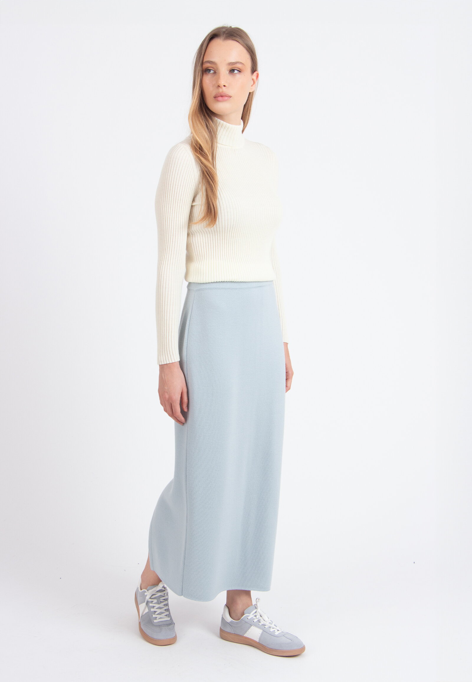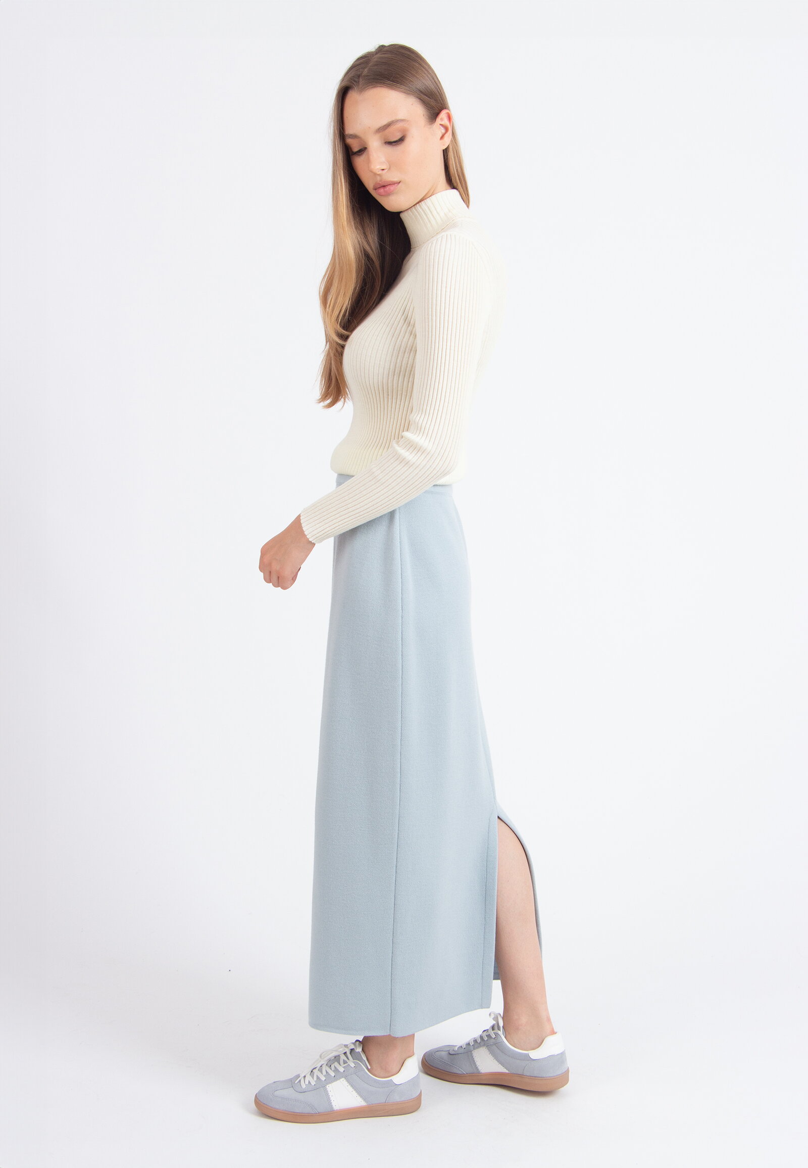 Jednobojna Midi Suknja sa Šlicem